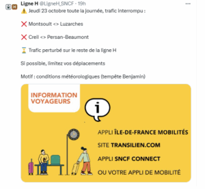 Mairie de Bruyères-sur-Oise » Alerte transport – Tempête Benjamin : circulation interrompue sur une partie de la ligne H ce jeudi 23 octobre » ligne h