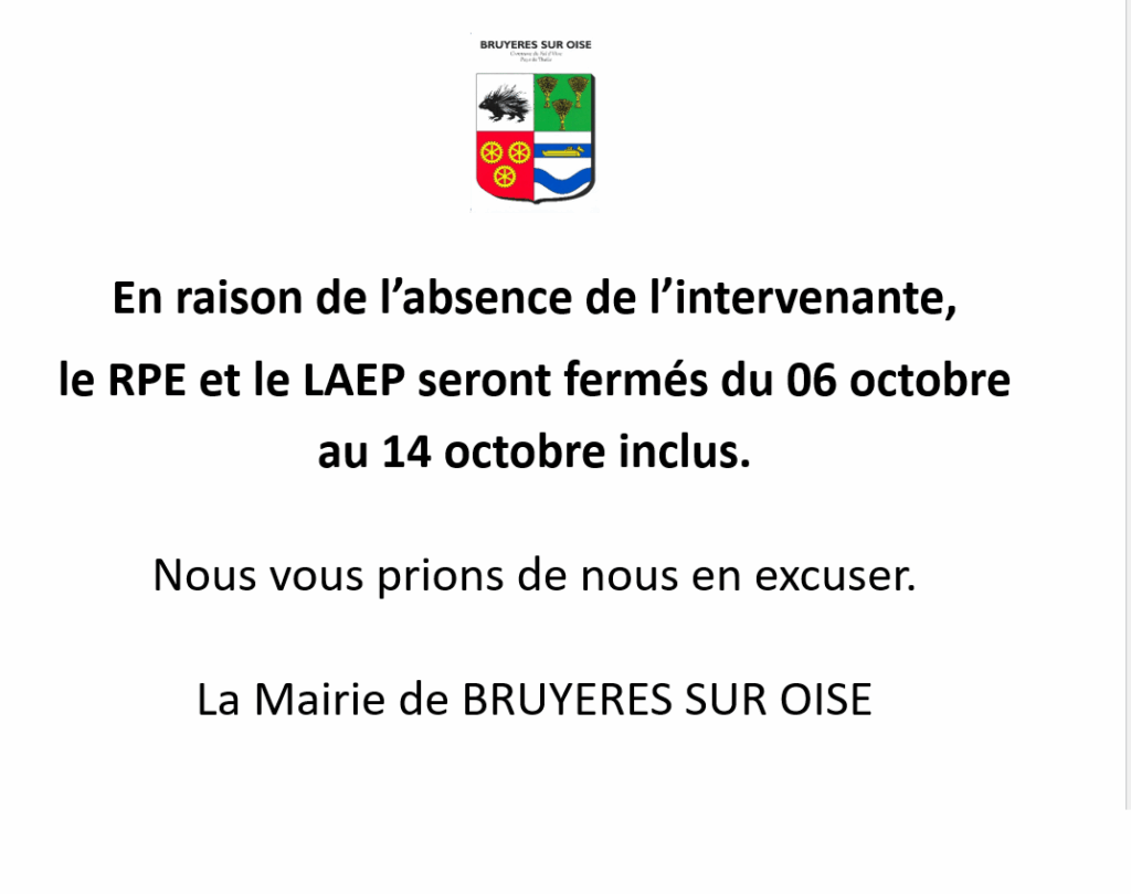 En raison de l’absence de l’intervenante, le RPE et le LAEP seront fermés du 06 octobre au 14 octobre inclus.