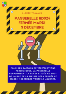 Passerelle RD924 fermée mardi Emmanuelle MASSIOU2025-11-27T14:41:55+01:00 Partagez cet article, Choisissez votre Plateforme! FacebookXRedditLinkedInWhatsAppTumblrPinterestVkXingEmail