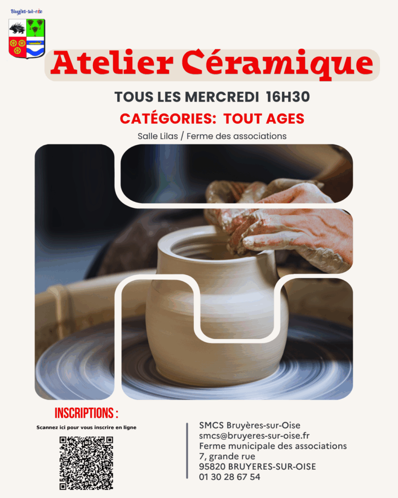 La mairie de Bruyères-sur-Oise a le plaisir d’annoncer que l’atelier céramique de 16h30 est confirmé pour cette année.