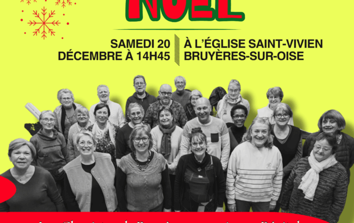 Le samedi 20 décembre à 14h45, ne manquez pas "Chantons Noël", un récital des Choristes de Bruyères-sur-Oise, dirigés par leur Chef de Chœur Vincent Casalta, à l’église Saint-Vivien. Ce spectacle musical s’inscrit dans [...]
