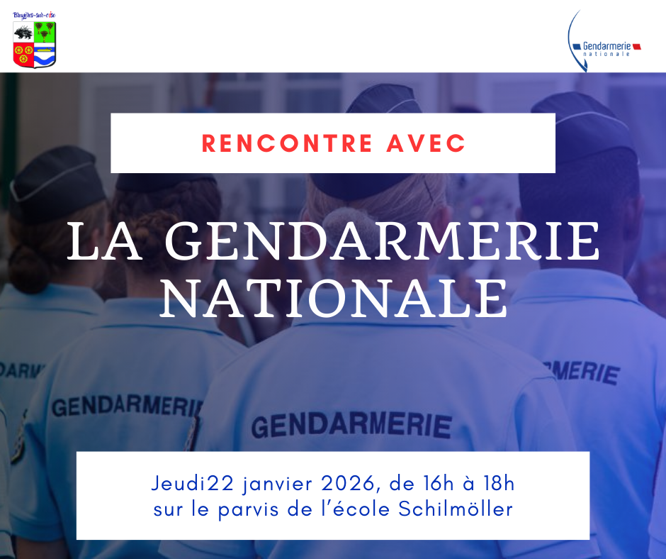 Rencontre avec la Gendarmerie à Bruyères-sur-Oise jeudi 22/01 à 16h00 sur le parvis de l’école Schilmöller