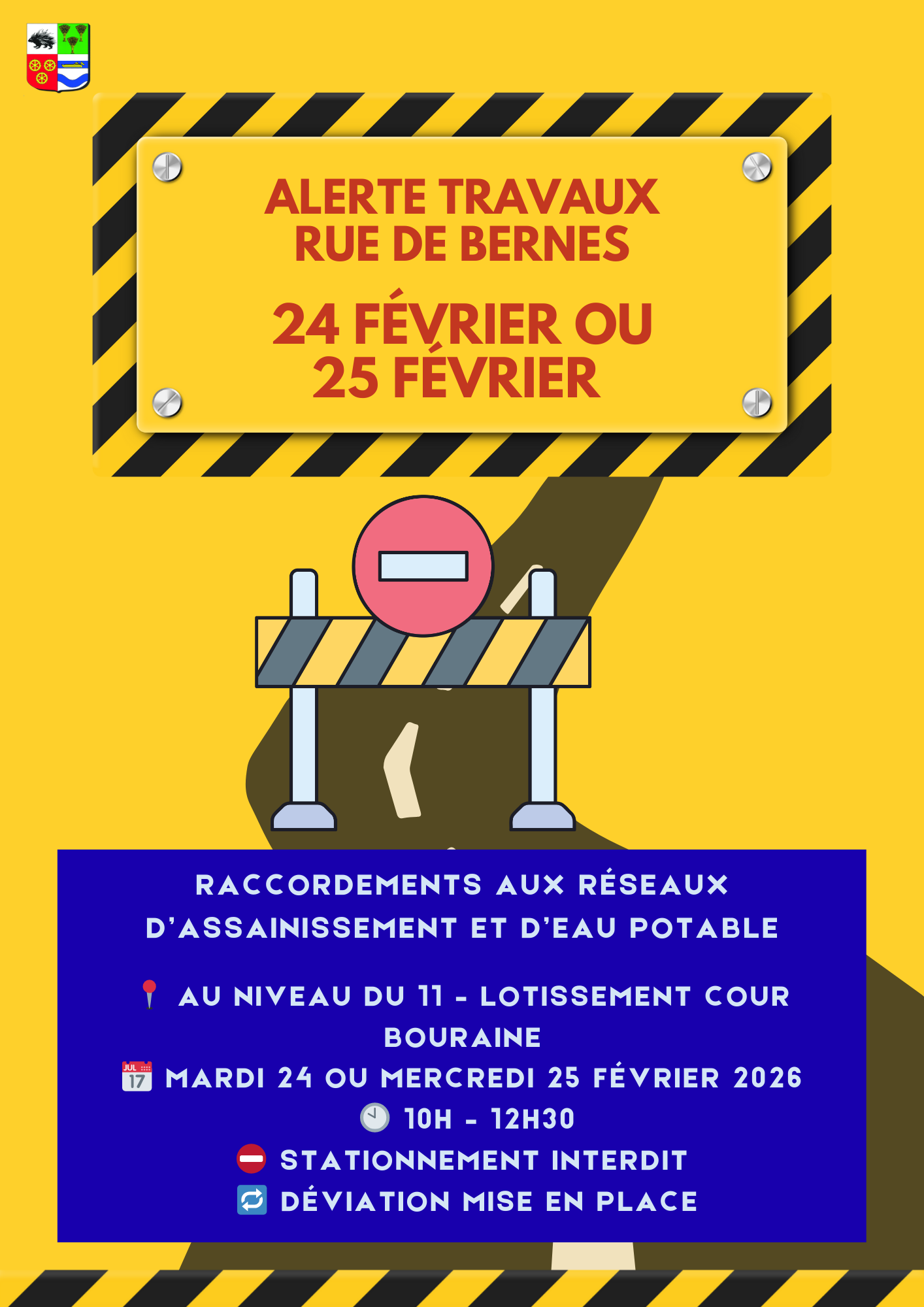 🚧 Travaux rue de Bernes – Circulation perturbée 24 ou 25 février