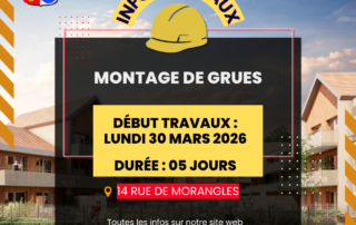 Dans le cadre du chantier de construction de 84 logements et d'un pôle médical, rue de Morangles, l'entreprise Eiffage Construction procédera au montage de deux grues à partir du lundi 30 mars 2026 et ce pendant 5 jours. Cette intervention est susceptible d'occasionner quelques nuisances dans le secteur. [...]
