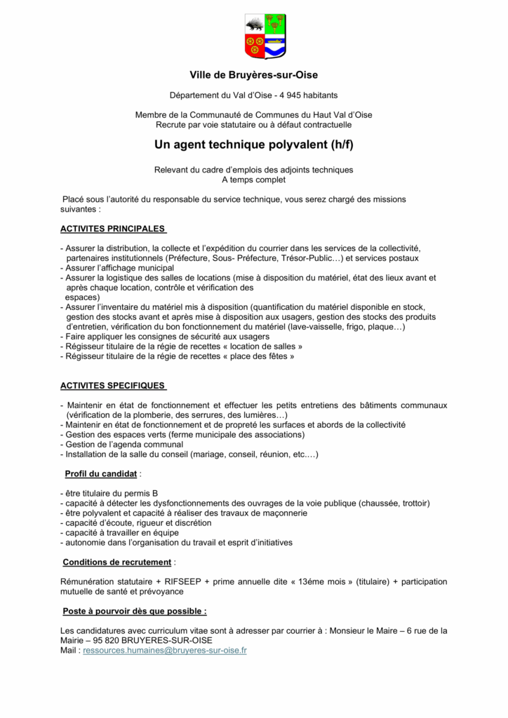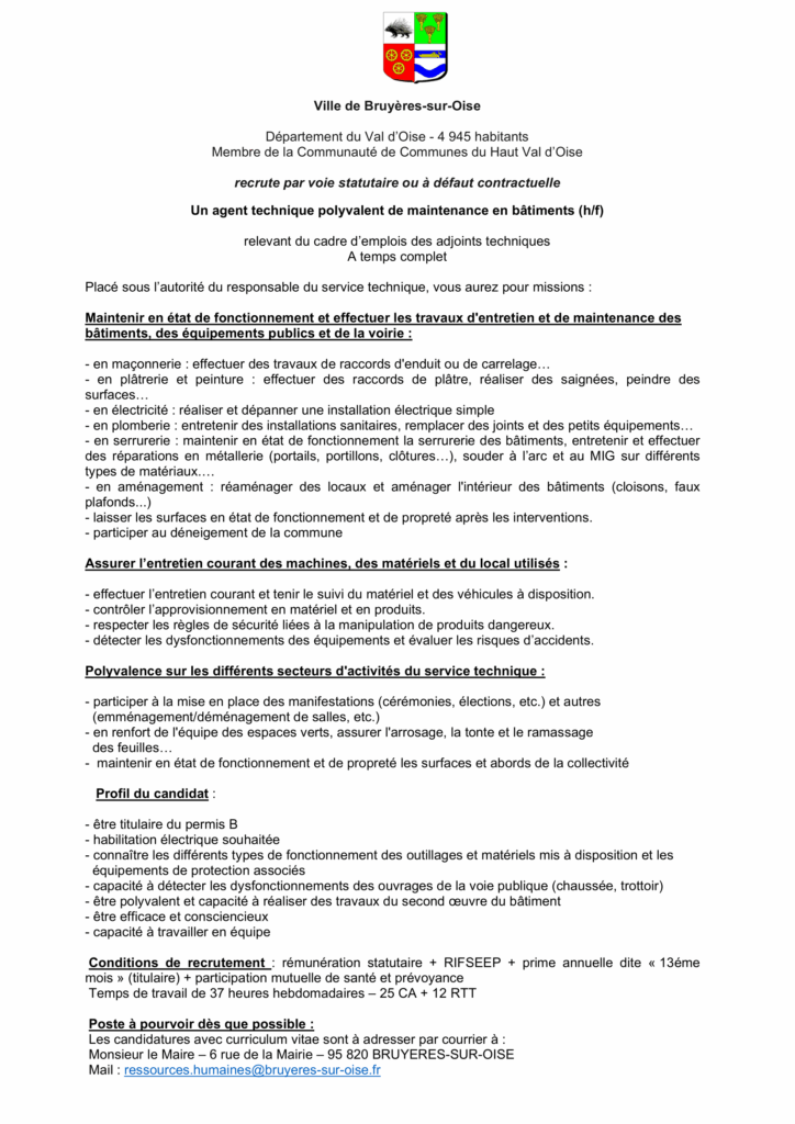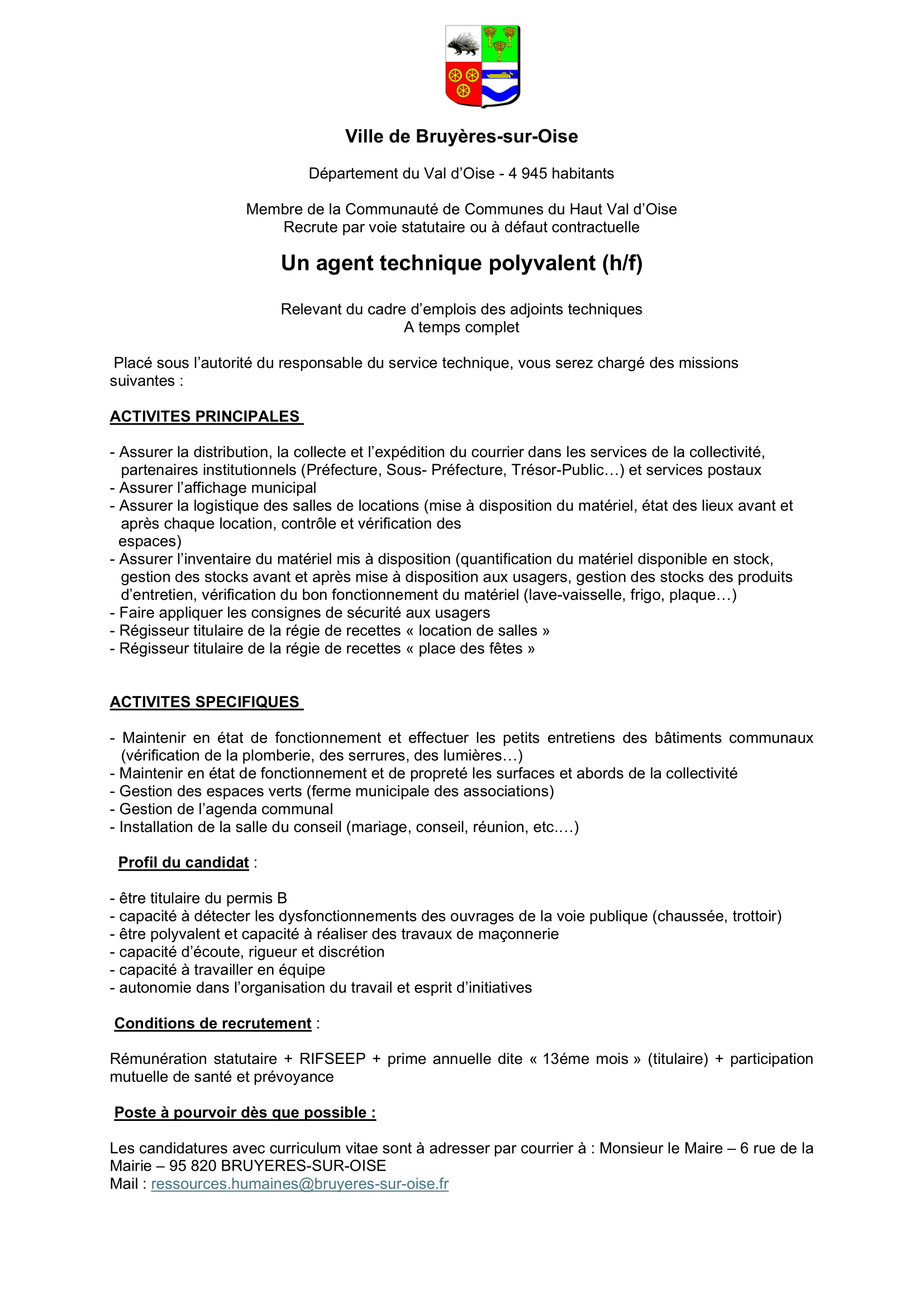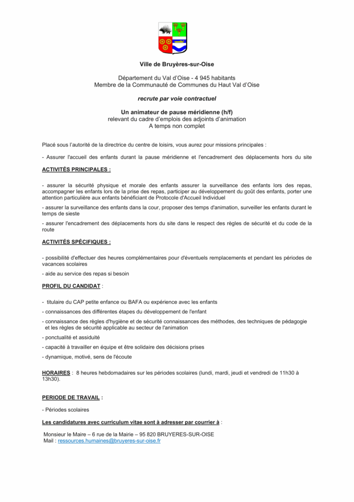 Monsieur le Maire – 6 rue de la Mairie – 95820 Bruyères-sur-Oise