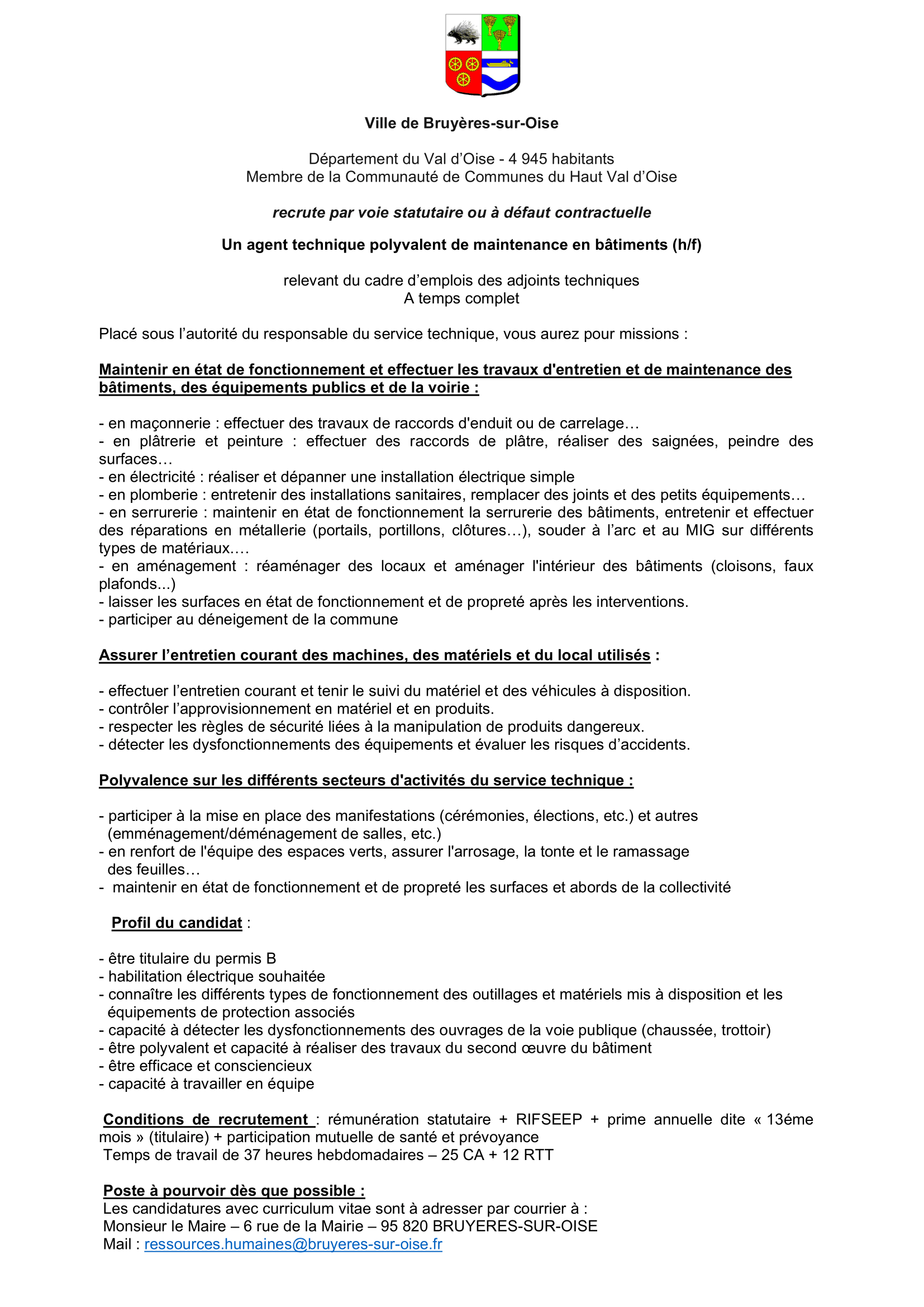 Agent technique polyvalent de maintenance en bâtiments (h/f)