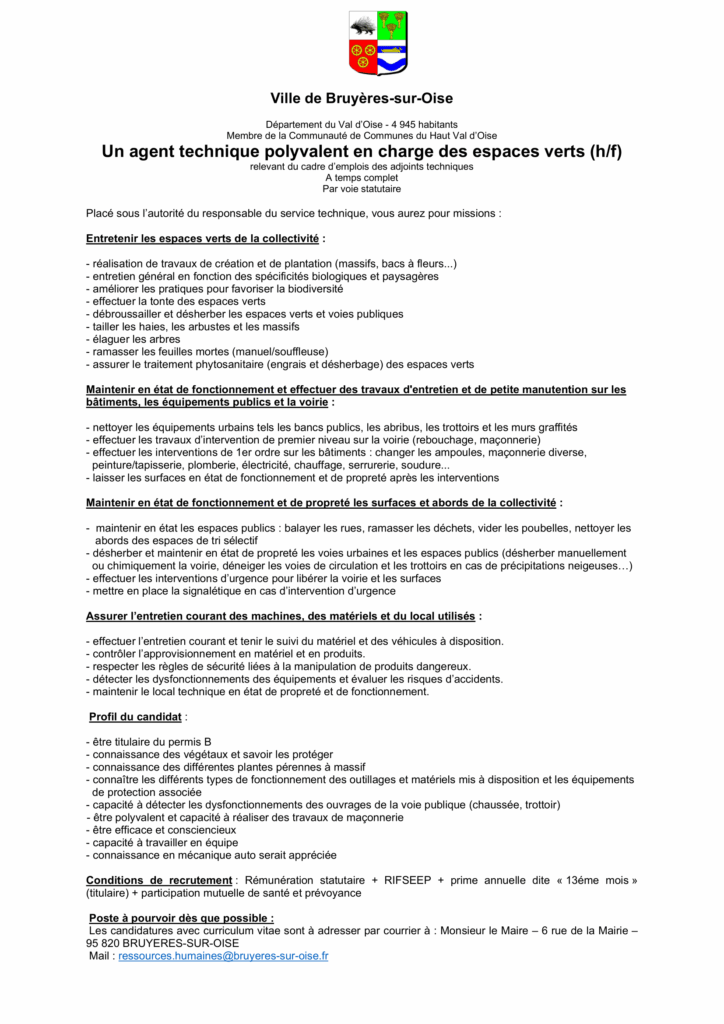 Agent technique polyvalent en charge des espaces verts (h/f)