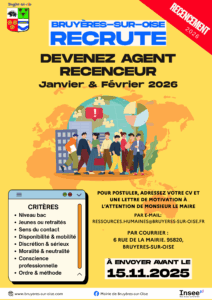 • Bruyères-sur-Oise recrute des agents recenseurs – Recensement 2026