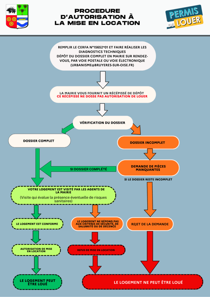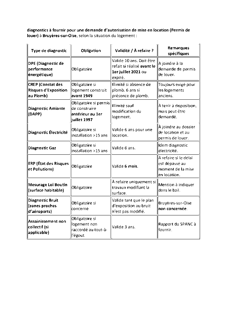 - Déposer ou envoyer par voie postale ou électronique ce formulaire dûment rempli, ainsi que le diagnostic technique, prévu à l’article 3-3 de la loi du 6 juillet 1989, à la mairie (au service urbanisme) ou à l’adresse : urbanisme@bruyeres-sur-oise.fr
